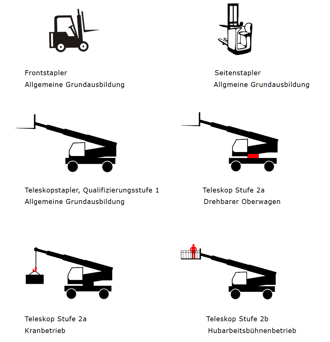 Der Lehrgang „Ausbildung Staplerfahrer“ soll den Teilnehmer die erforderlichen theoretischen und praktischen Kenntnisse zum sicheren Umgang mit diesen Geräten vermitteln und erfüllt gleichzeitig die Verpflichtung der Betreiber zur Ausbildung gem. § 7 DGUV V 67-69 „Flurförderzeuge“, DGUV G 308-001(BGG 925), DGUV I 208-004 (BGI 545), Arbeitsschutzgesetz, Betriebssicherheitsverordnung und nach den Grundlagen der EU-Richtlinien 89/391/EWG und 2009/104/EG.
