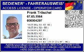 Sie sollten den Bediener-Fahrerausweis auch alle 10 bis 15 Jahre erneuern, damit das Passfoto und die Daten auf dem neuesten Stand sind.